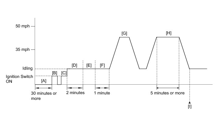 11. Drive the vehicle at a speed between 35 and 50 mph (56 and 80 km/h) for 5 minutes or more [H].