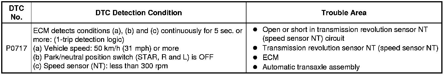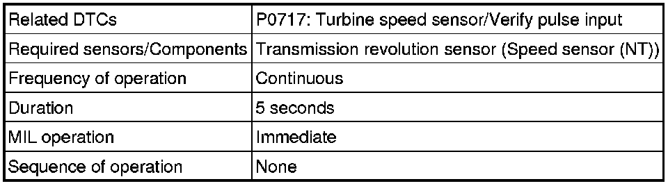 U341E AUTOMATIC TRANSMISSION / TRANSAXLE: AUTOMATIC TRANSAXLE SYSTEM: P0717: Turbine Speed Sensor Circuit No Signal