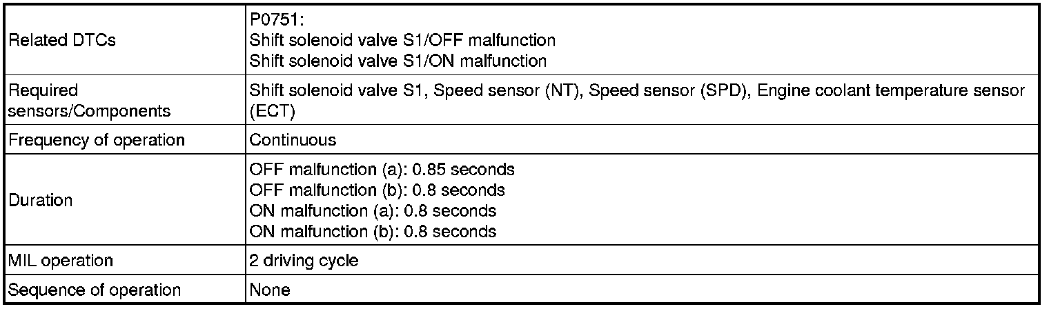 U341E AUTOMATIC TRANSMISSION / TRANSAXLE: AUTOMATIC TRANSAXLE SYSTEM: P0751: Shift Solenoid "A" Performance (Shift Solenoid Valve S1)