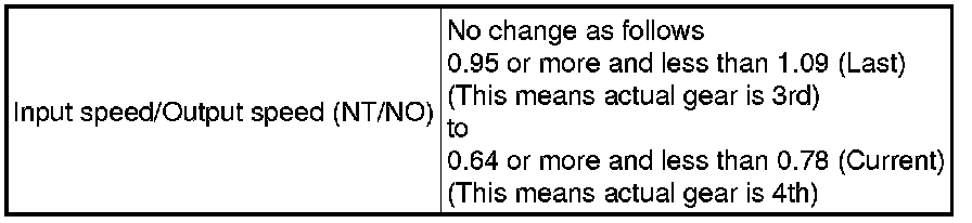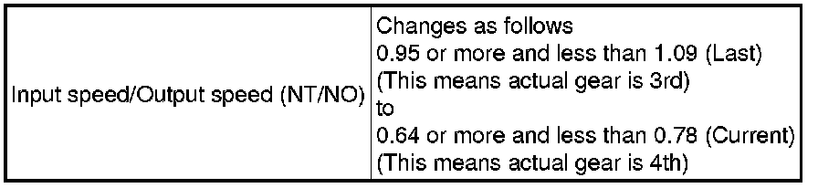 The ECM uses signals from the vehicle speed sensor and speed sensor NT to detect the actual gear position (1st, 2nd, 3rd or 4th gear).