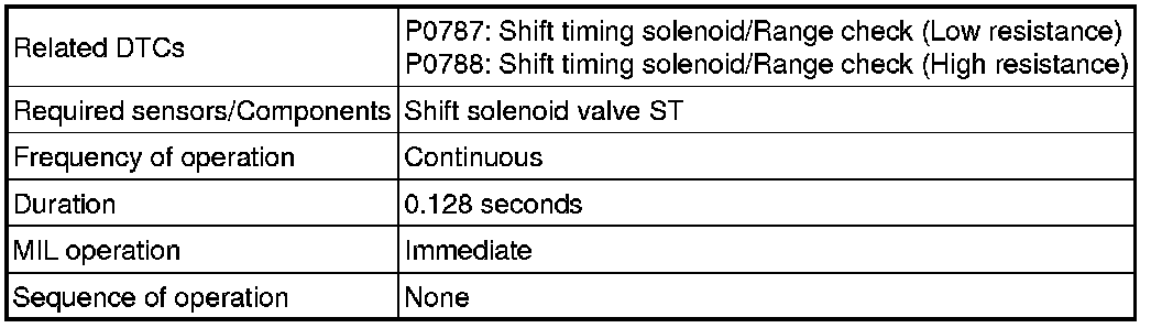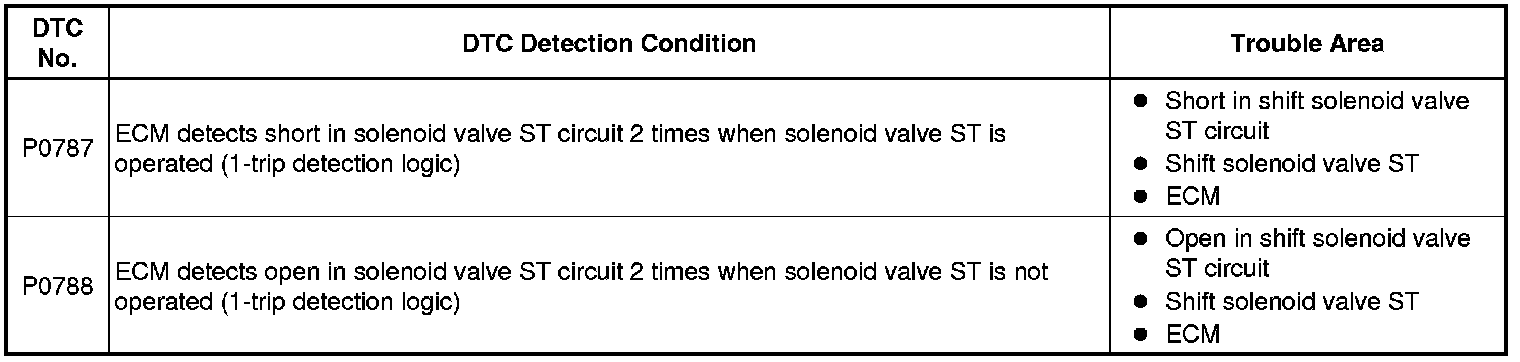 U341E AUTOMATIC TRANSMISSION / TRANSAXLE: AUTOMATIC TRANSAXLE SYSTEM: P0787, P0788: Shift / Timing Solenoid Low (Shift Solenoid Valve ST)