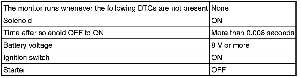 The ECM commands gearshift by turning the shift solenoid valves "ON/OFF". When there is an open or short circuit in any shift solenoid valve circuit, the ECM detects the problem and the MIL comes on. Illuminating the MIL, the ECM performs the fail-safe and turns the other shift solenoid valves in good condition "ON/OFF" (In case of an open or short circuit, the ECM stops sending current to the circuit.).