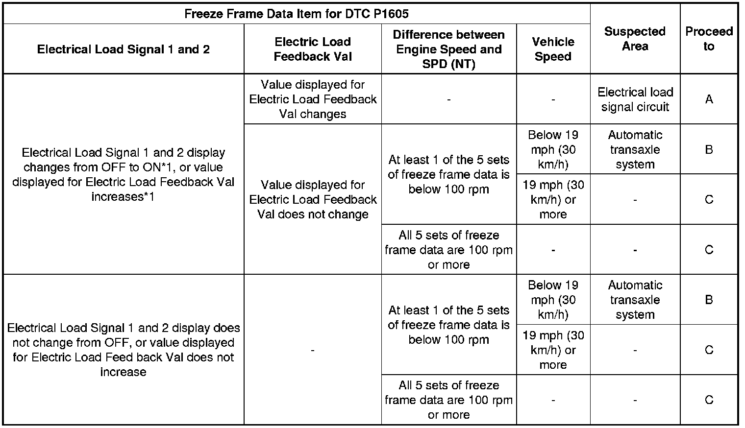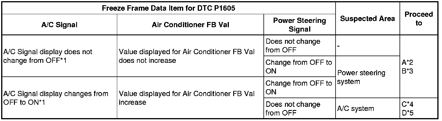 *1: If the Electrical Load Signal display changes from OFF to ON or the "Electric Load Feedback Val" increases, it probably is a malfunction due to a change in electrical load. Check the generator and ECM.