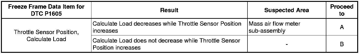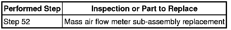 Even if the results are normal, the mass air flow meter sub-assembly may have been malfunctioning. Continue this inspection procedure until step 57, and if there are no problems with other parts, replace the mass air flow meter sub-assembly (refer to step 58).