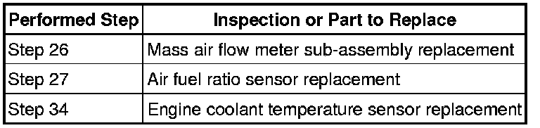 * Even if the results are normal, the air conditioning system may have been malfunctioning. Continue this inspection procedure until step 50, and if there are no problems with other parts, inspect the air conditioning system (refer to step 58).