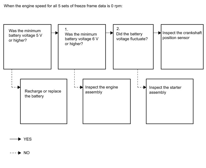 (1) The engine speed recorded in the freeze frame data is 0 rpm (the engine does not crank).