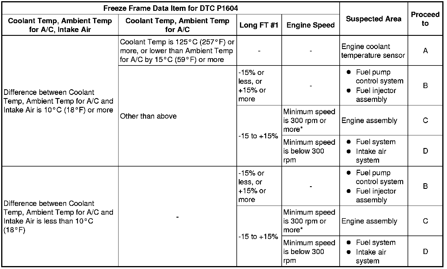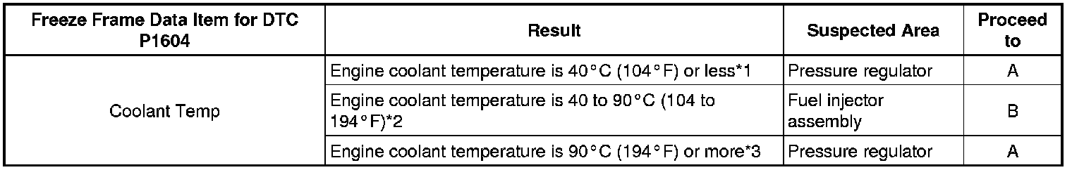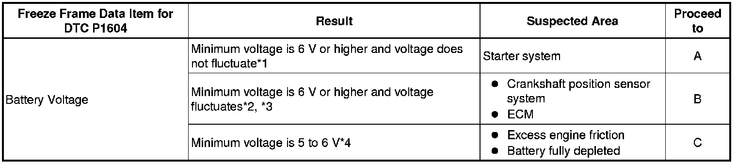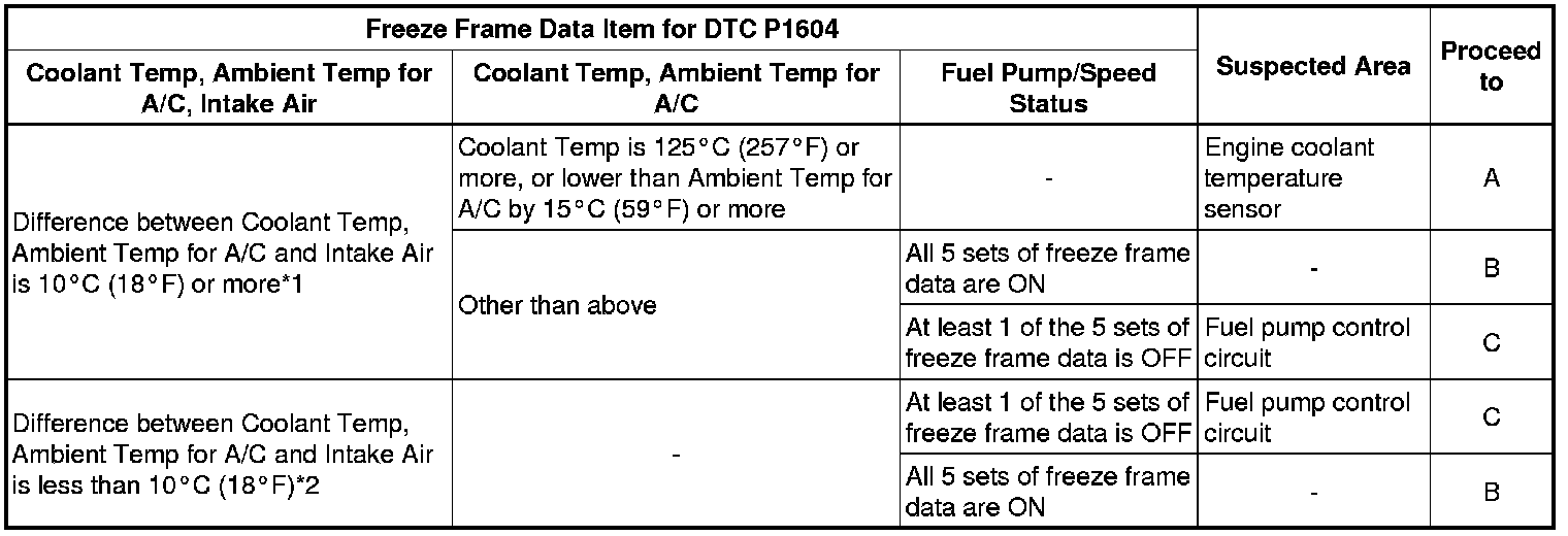 * In contrast to normal malfunction diagnosis for components, circuits and systems, DTC P1604 is used to determine the malfunctioning area from the problem symptoms and freeze frame data when the user mentions problems such as starting difficulty.