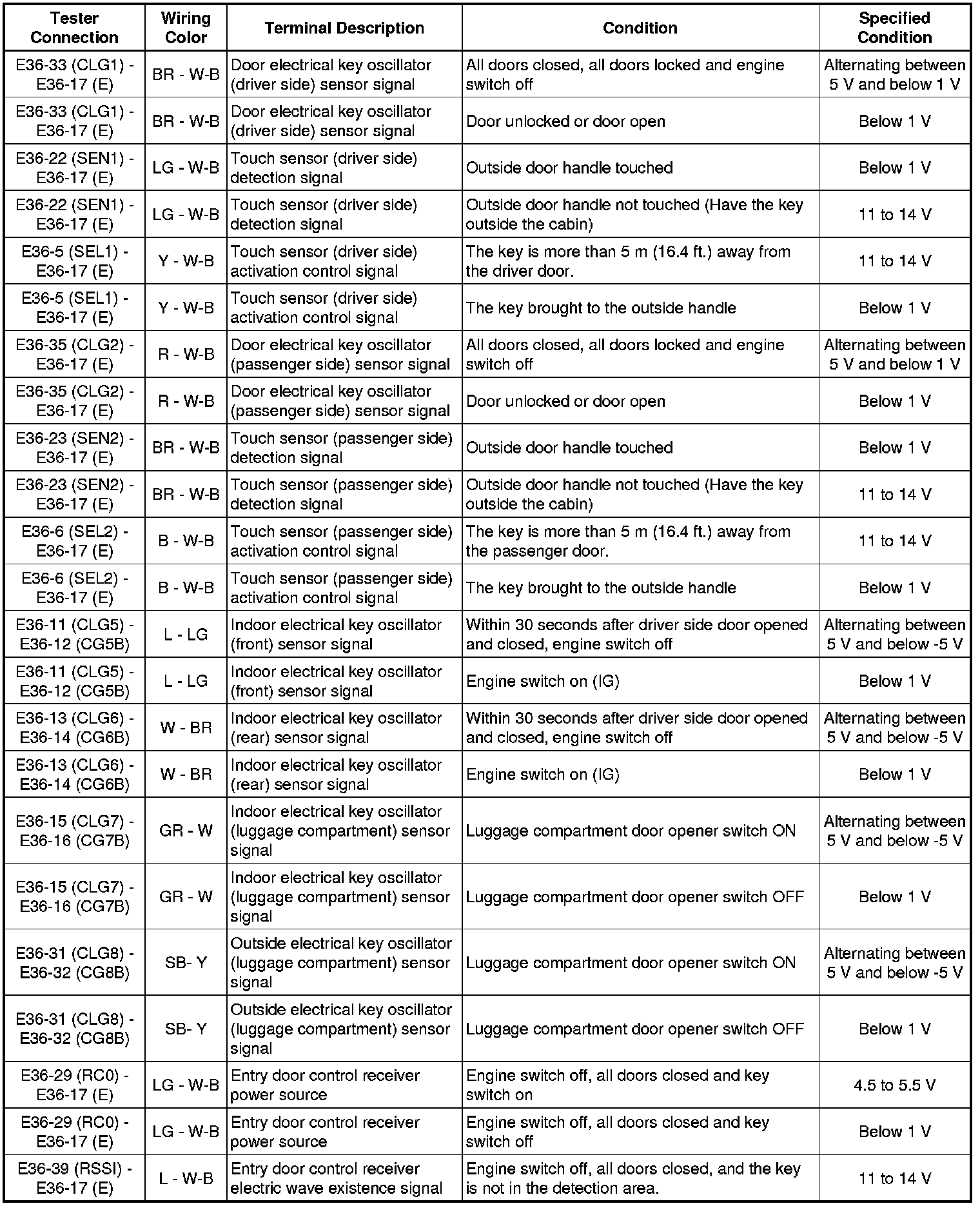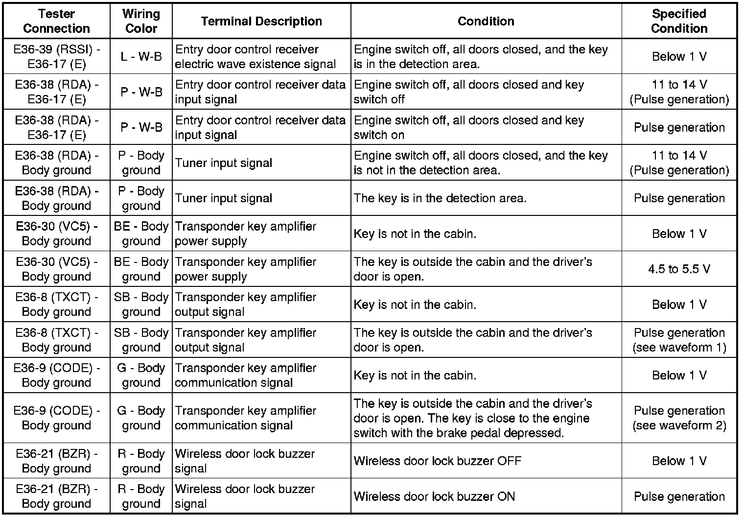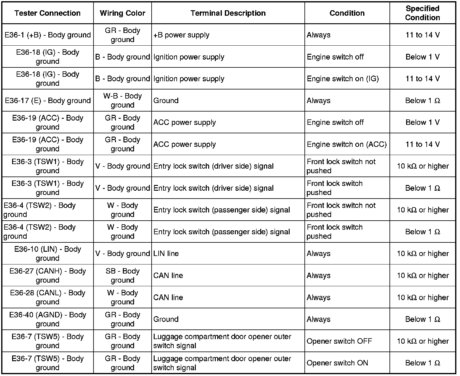 THEFT DETERRENT / KEYLESS ENTRY: SMART KEY SYSTEM (for Entry Function): TERMINALS OF ECU