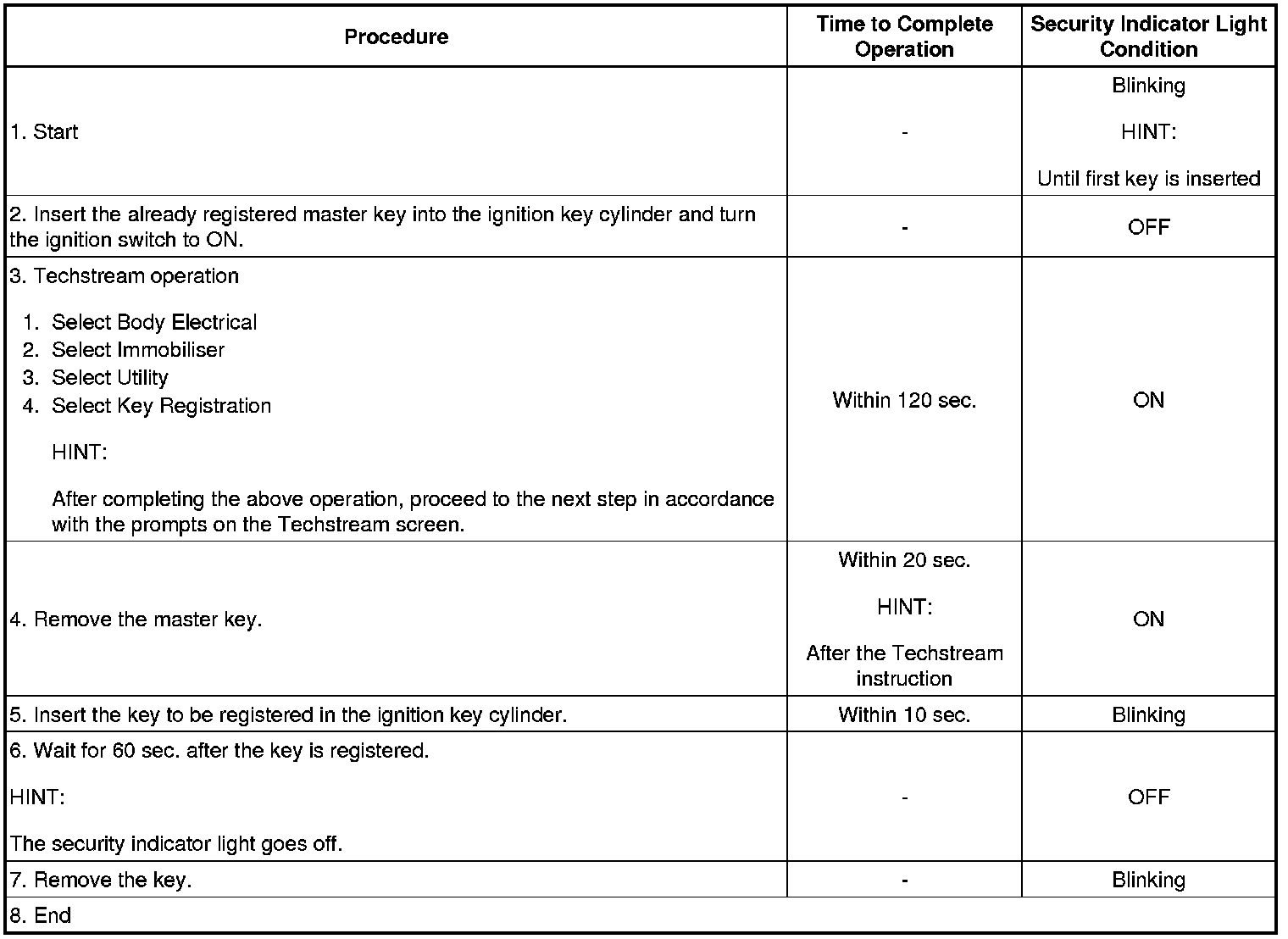 * A brief outline of key code registration procedures is shown above. For detailed information, refer to the Techstream screen.