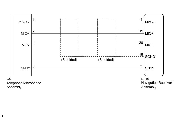 This circuit sends a microphone signal from the telephone microphone assembly to the navigation receiver assembly.