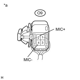 (d) Connect an oscilloscope to terminals 2 (MIC+) and 4 (MIC-) of the O9 telephone microphone assembly connector.