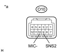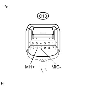 (d) Connect an oscilloscope to terminals 11 (MI1+) and 10 (MIC-) of the O10 map light assembly connector.
