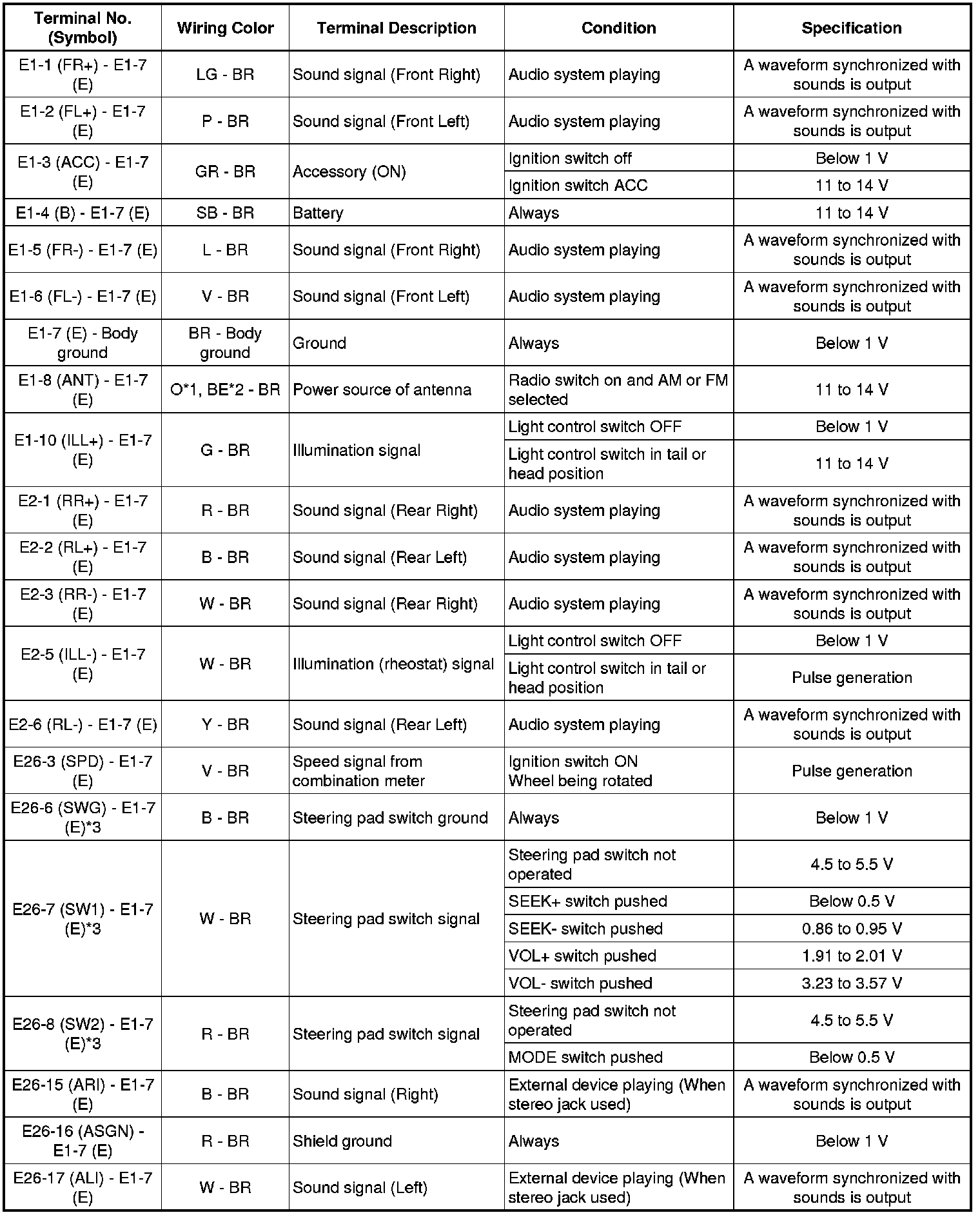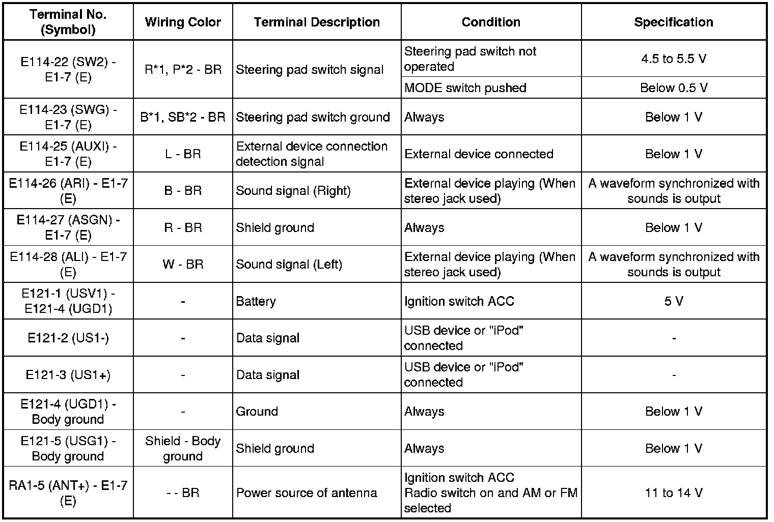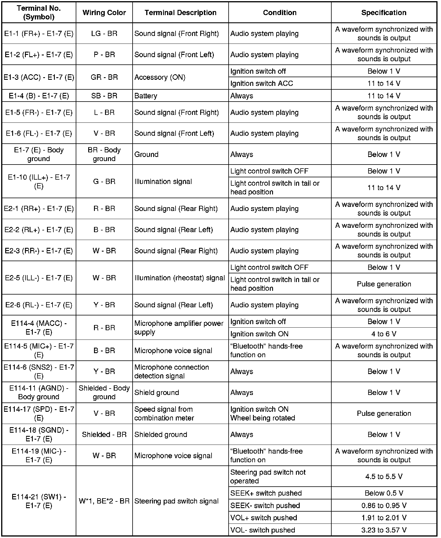AUDIO / VIDEO: AUDIO AND VISUAL SYSTEM (w/o Multi-display): TERMINALS OF ECU