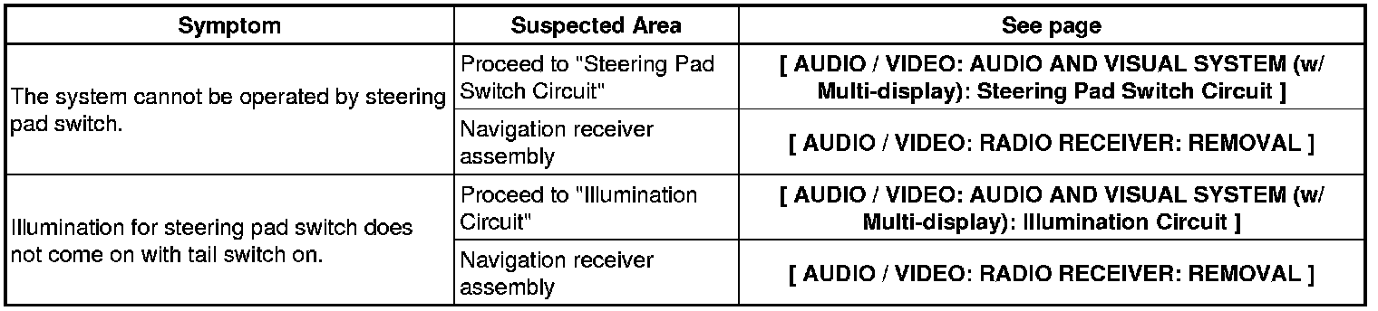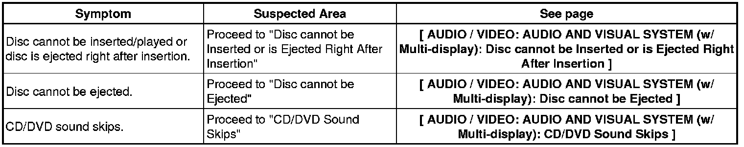 AUDIO / VIDEO: AUDIO AND VISUAL SYSTEM (w/ Multi-display): PROBLEM SYMPTOMS TABLE