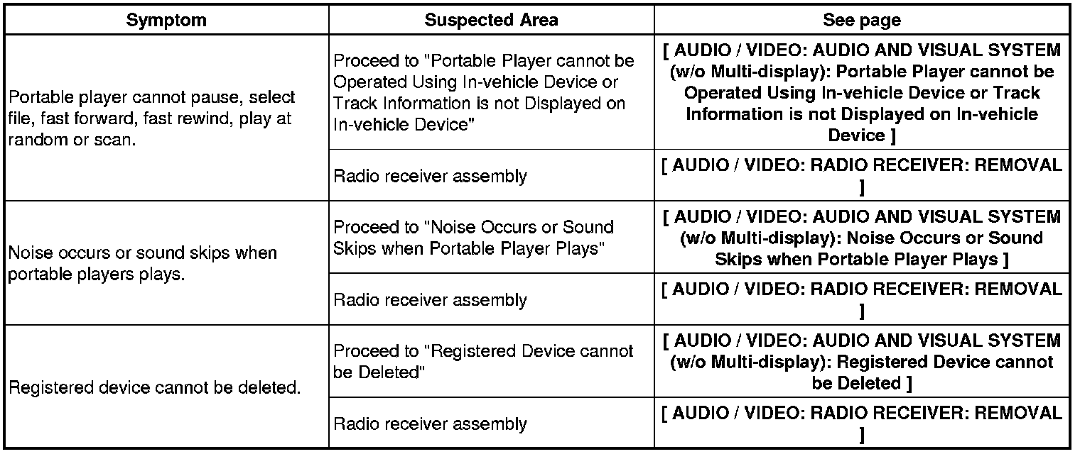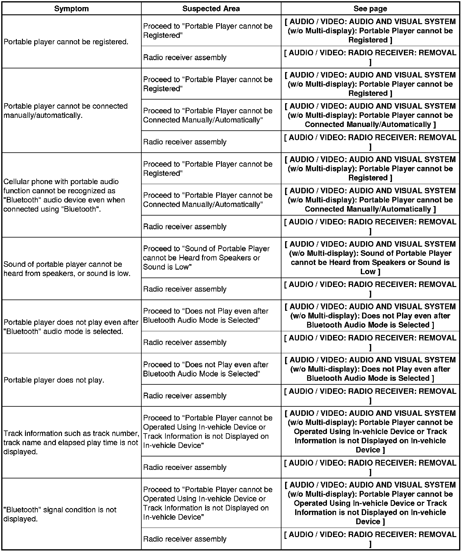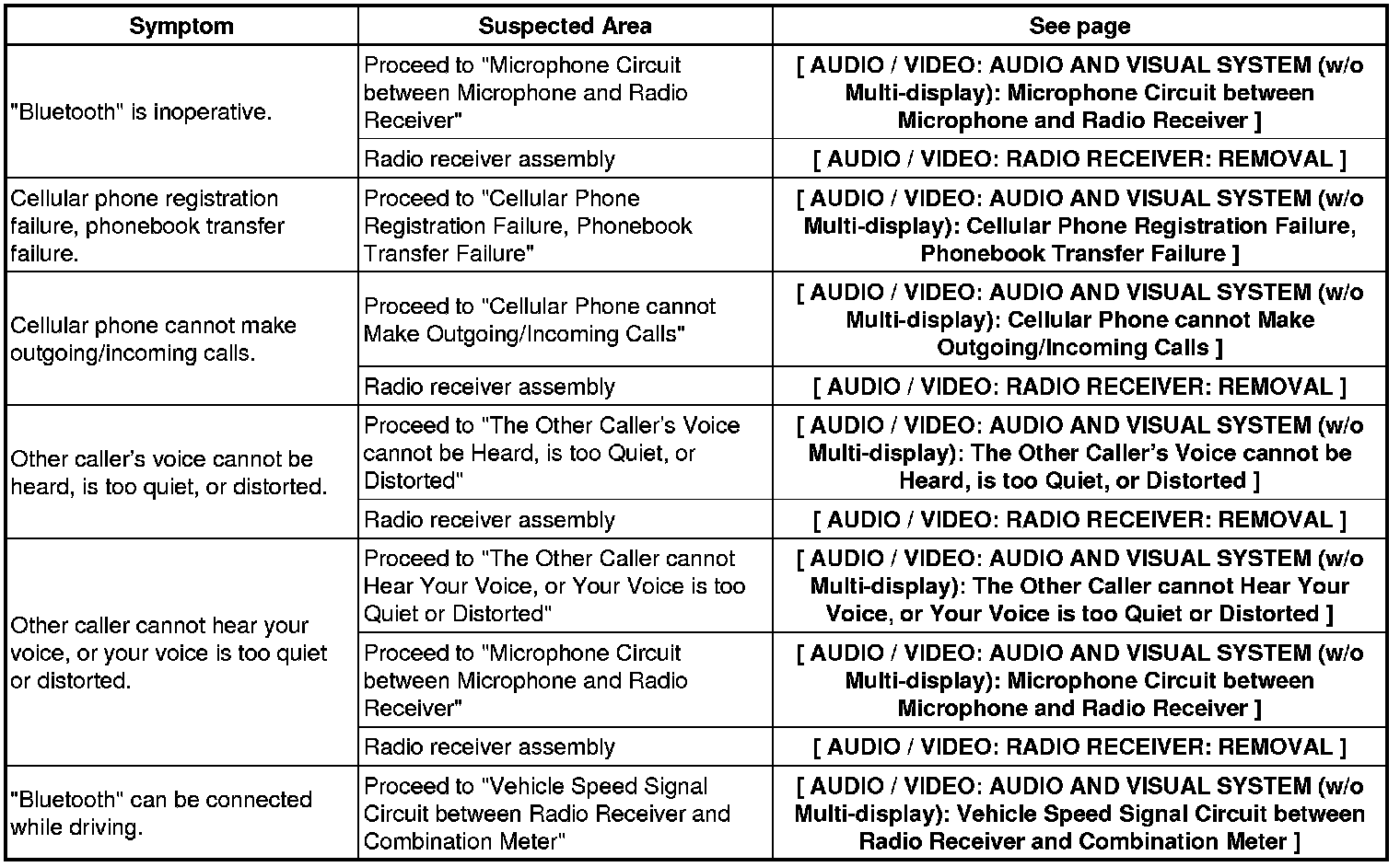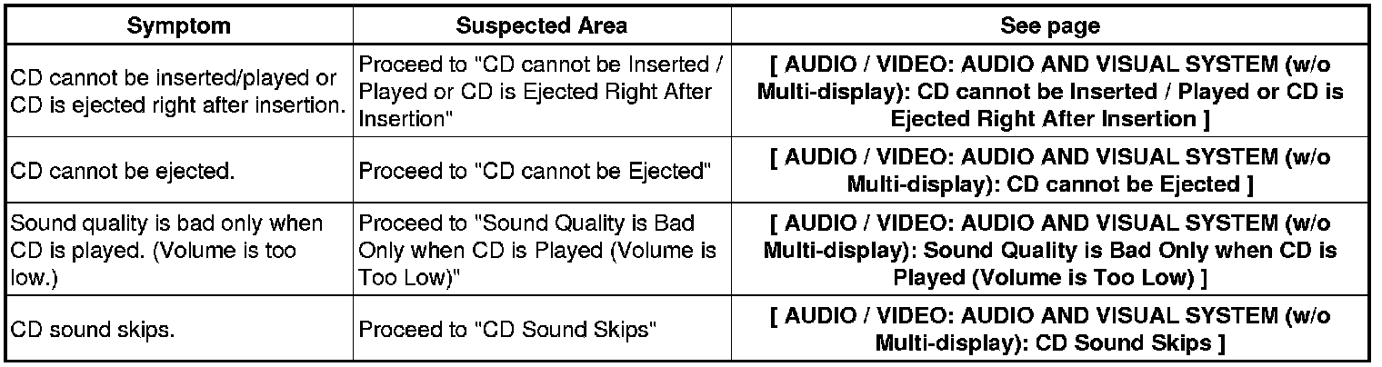AUDIO / VIDEO: AUDIO AND VISUAL SYSTEM (w/o Multi-display): PROBLEM SYMPTOMS TABLE