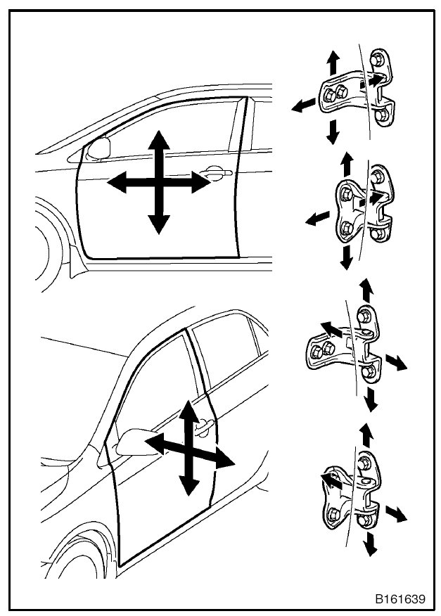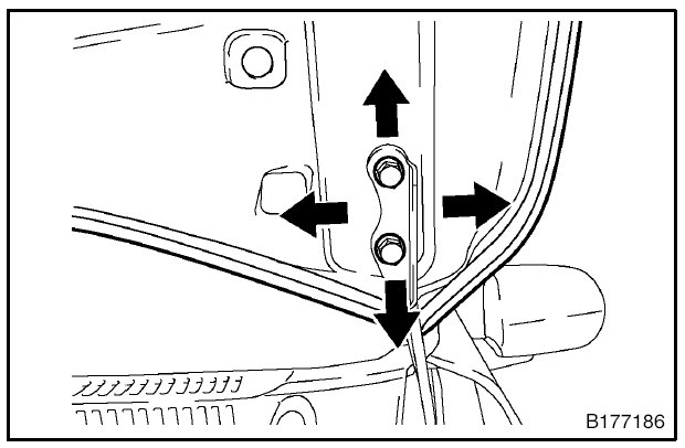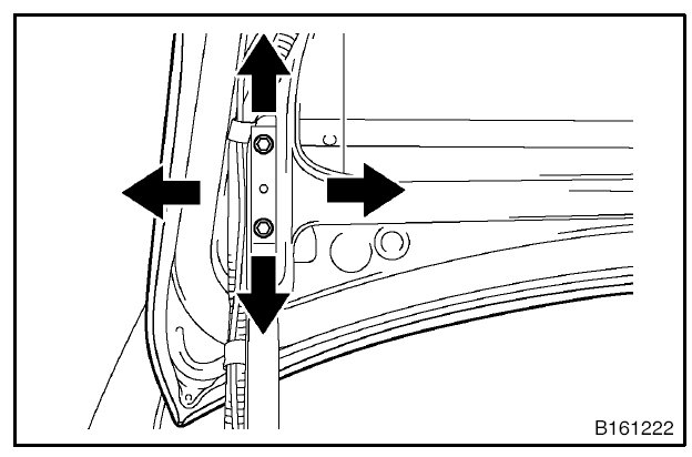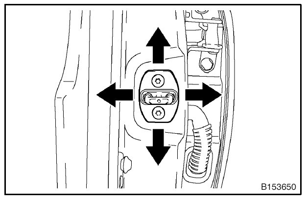 1. Using SST, loosen the hinge bolts on the vehicle body and adjust the door position.