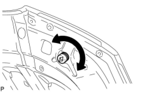 (b) Adjust the height of the front end of the hood using the cushion rubber.