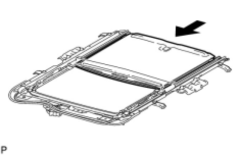 (a) Insert the sunshade trim into the sliding roof housing sub-assembly.