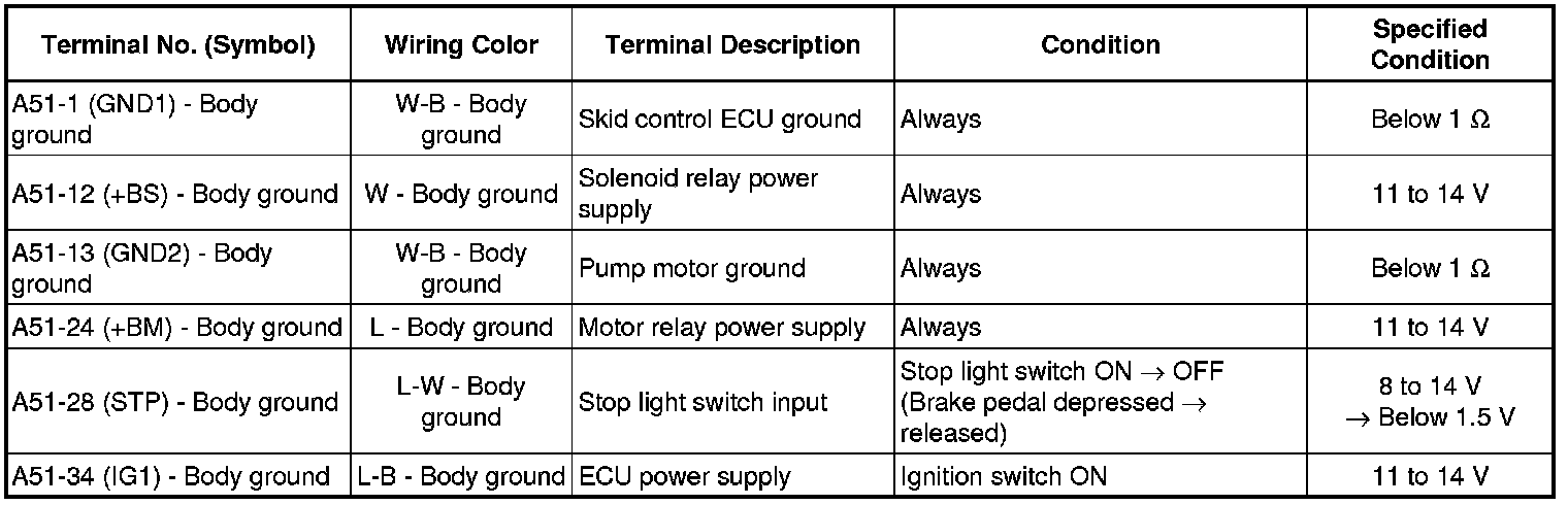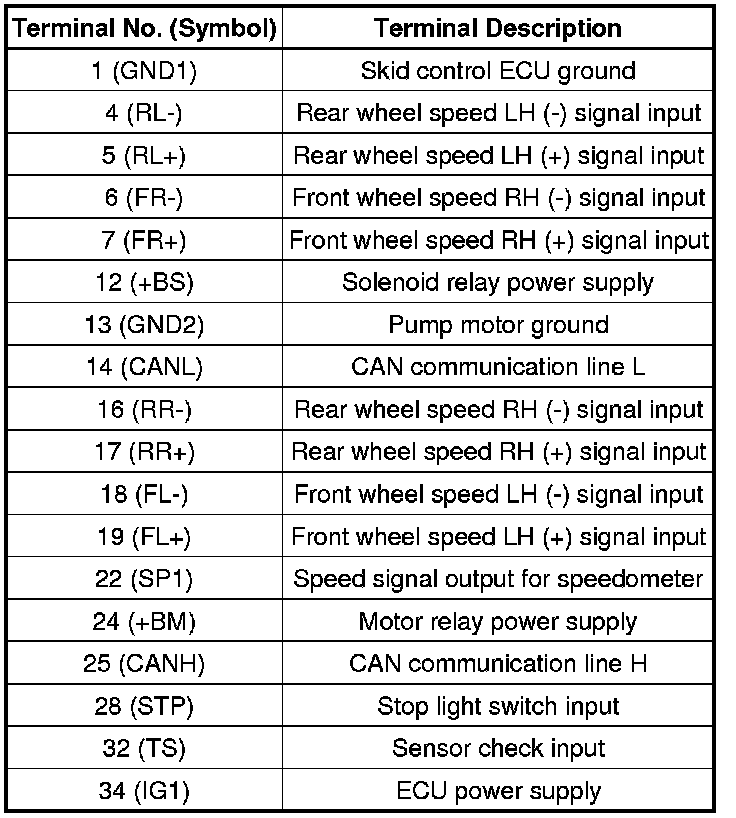 BRAKE CONTROL / DYNAMIC CONTROL SYSTEMS: ANTI-LOCK BRAKE SYSTEM: TERMINALS OF ECU