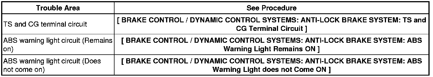 If the ABS warning light does not blink, inspect the TS and CG terminal circuit and ABS warning light circuit.