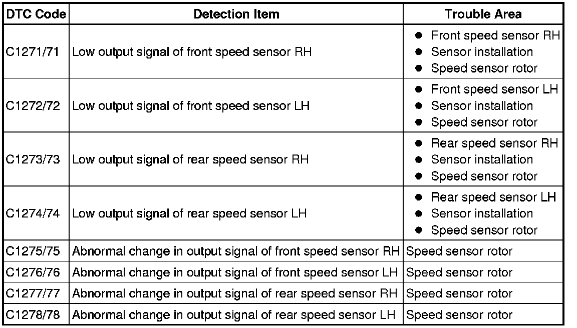 * After the ABS warning light goes off, if the vehicle speed exceeds 80 km/h (50 mph), a sensor check code will be stored again. Decelerate or stop the vehicle before the speed reaches 80 km/h (50 mph).