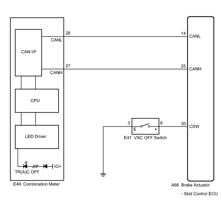 7. CHECK HARNESS AND CONNECTOR (SKID CONTROL ECU - VSC OFF SWITCH)