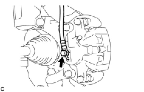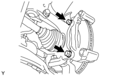 (a) Remove the 2 bolts and front disc brake cylinder mounting from the steering knuckle.