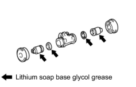 (a) Apply lithium soap base glycol grease to 2 new wheel cylinder cups and the 2 pistons.