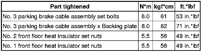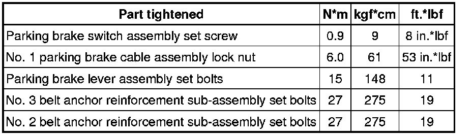 SPECIFICATIONS: PARKING BRAKE: TORQUE SPECIFICATIONS