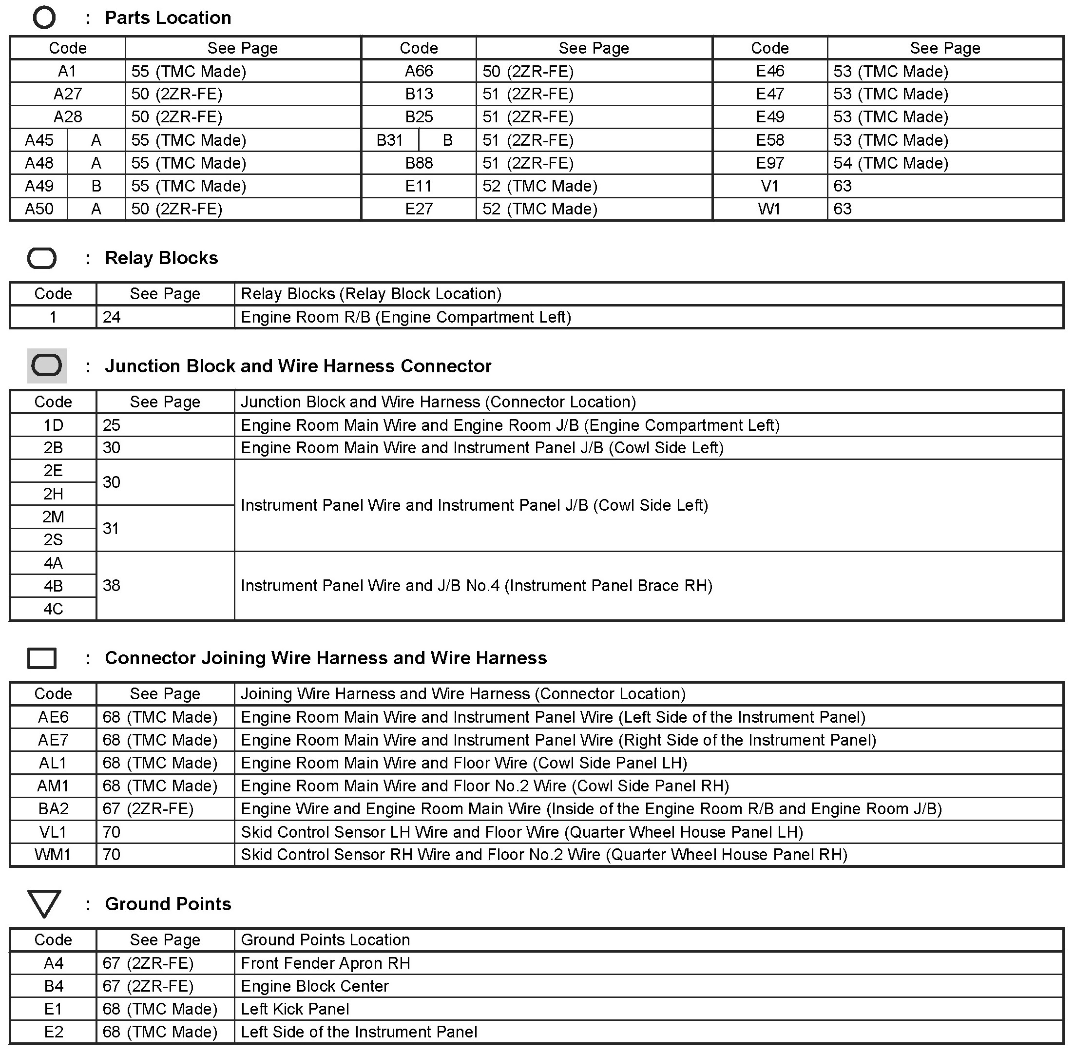 Locations: The locations of components, connectors, ground points, and splices referred to within these diagrams can be found at Vehicle Locations. Locations