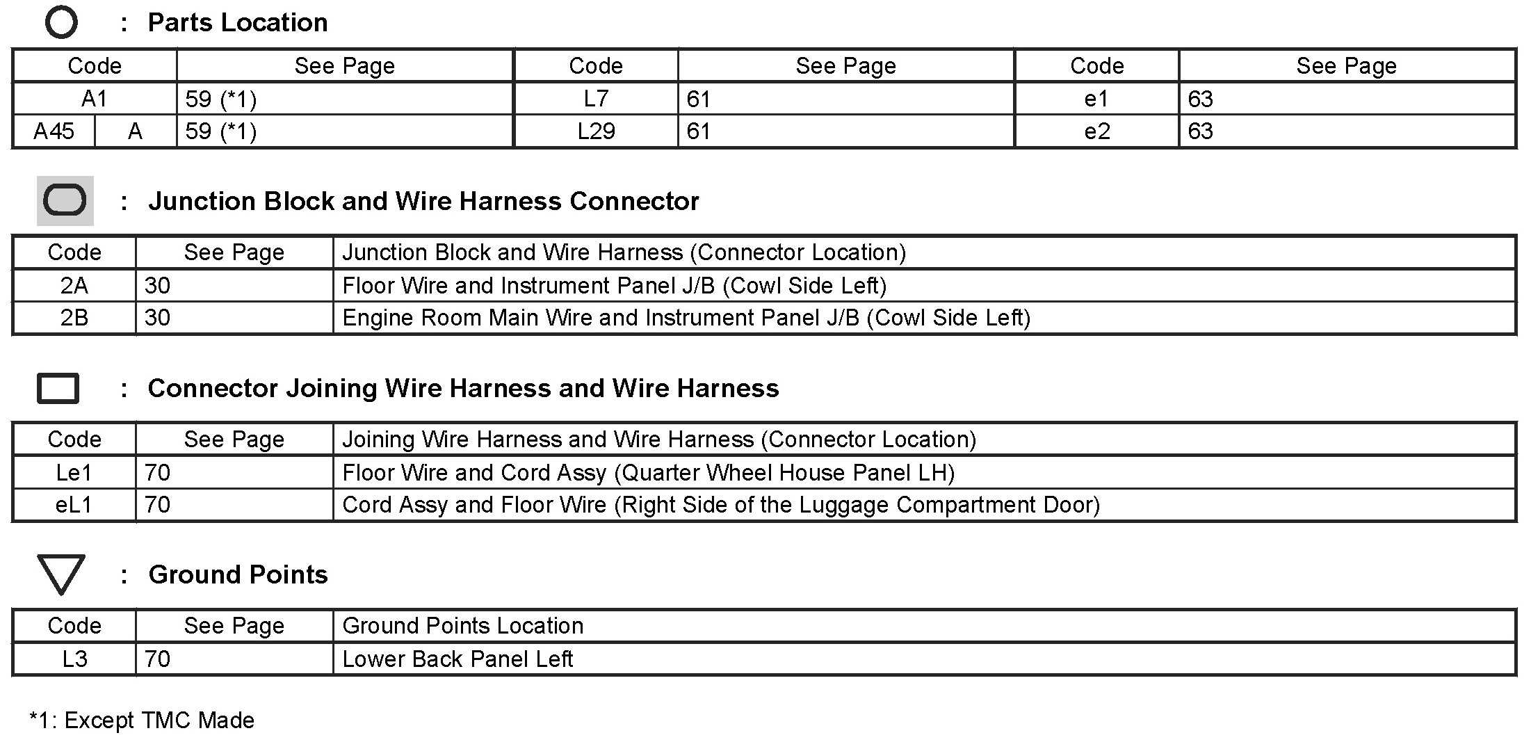 Locations: The locations of components, connectors, ground points, and splices referred to within these diagrams can be found at Vehicle Locations. Locations