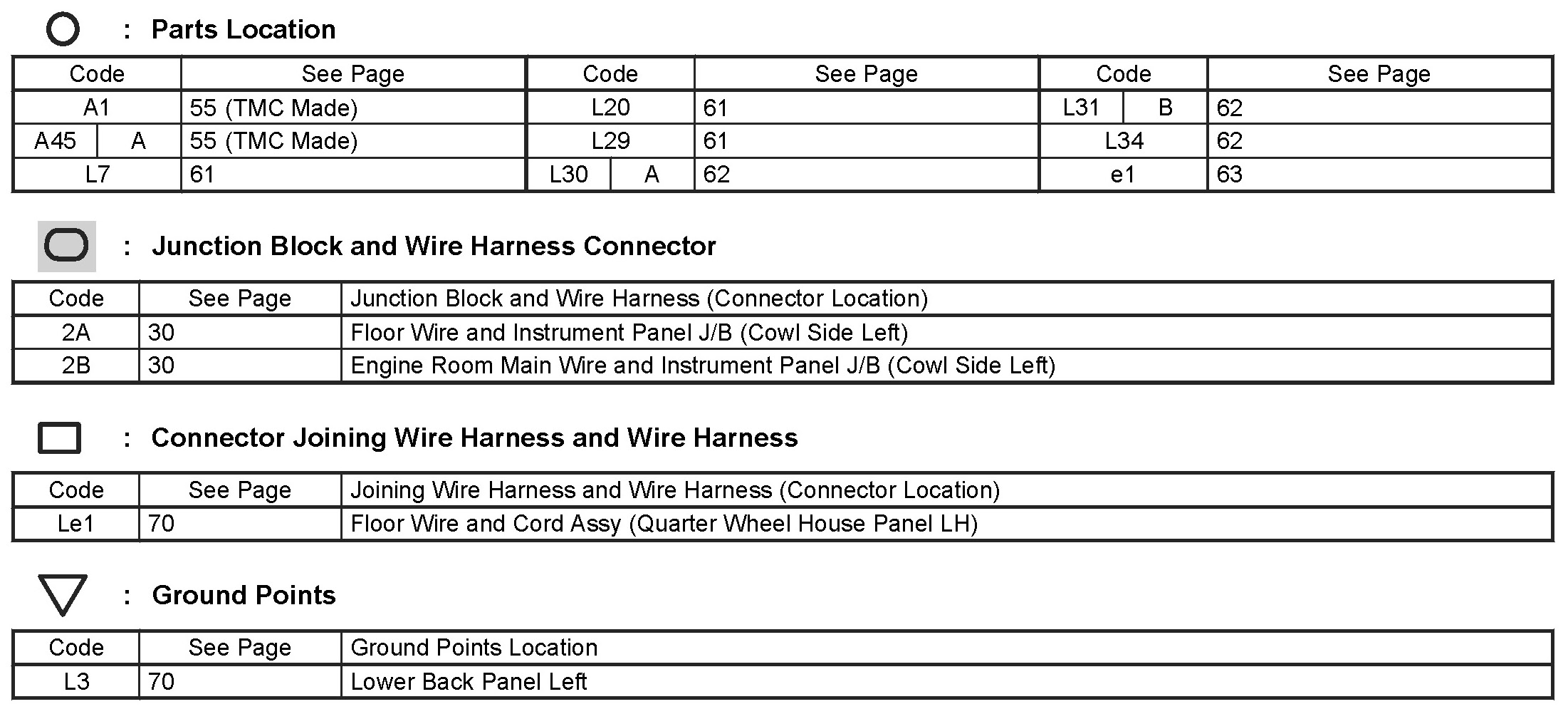 Locations: The locations of components, connectors, ground points, and splices referred to within these diagrams can be found at Vehicle Locations. Locations