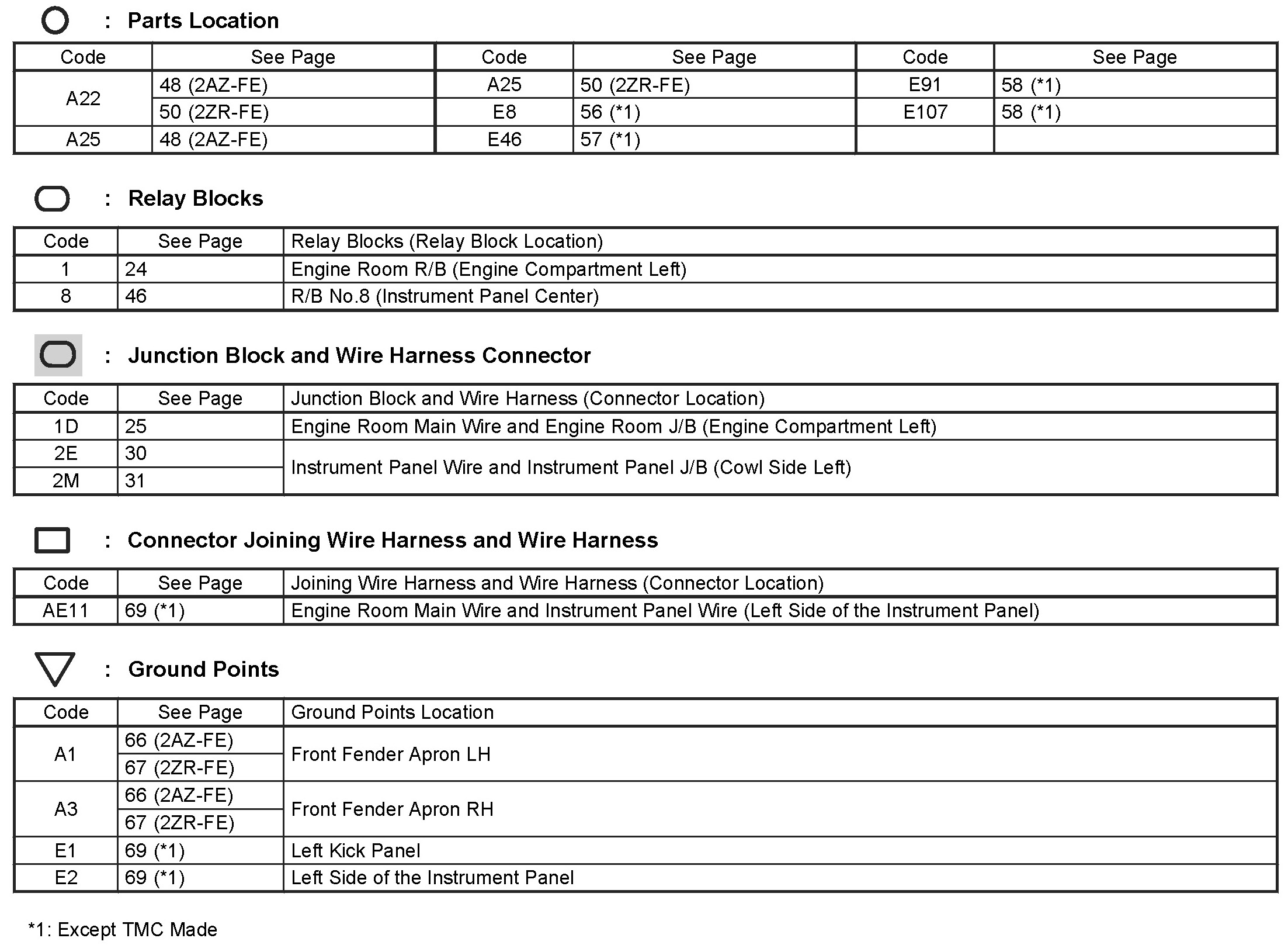 Locations: The locations of components, connectors, ground points, and splices referred to within these diagrams can be found at Vehicle Locations. Locations