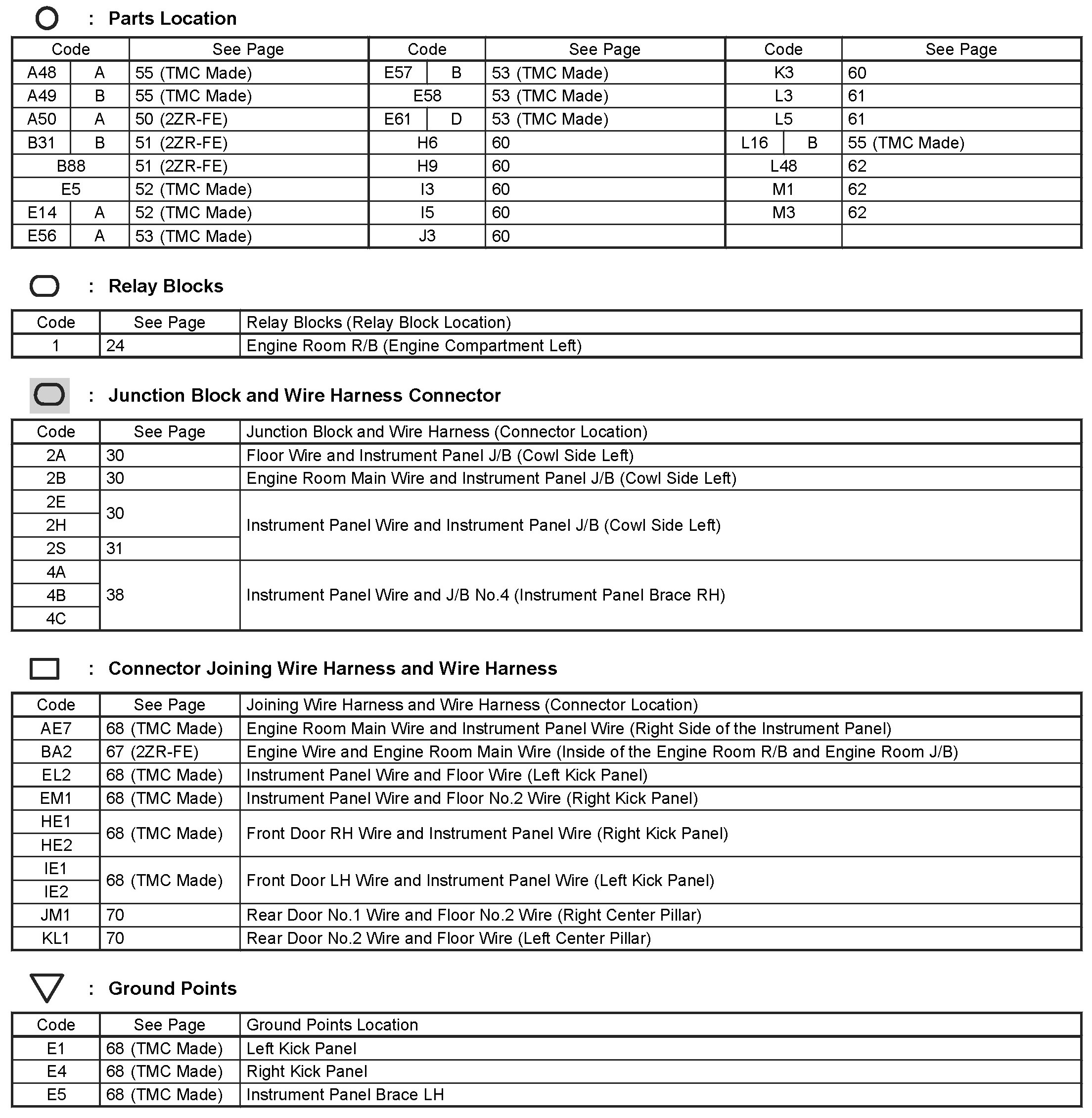 Locations: The locations of components, connectors, ground points, and splices referred to within these diagrams can be found at Vehicle Locations. Locations