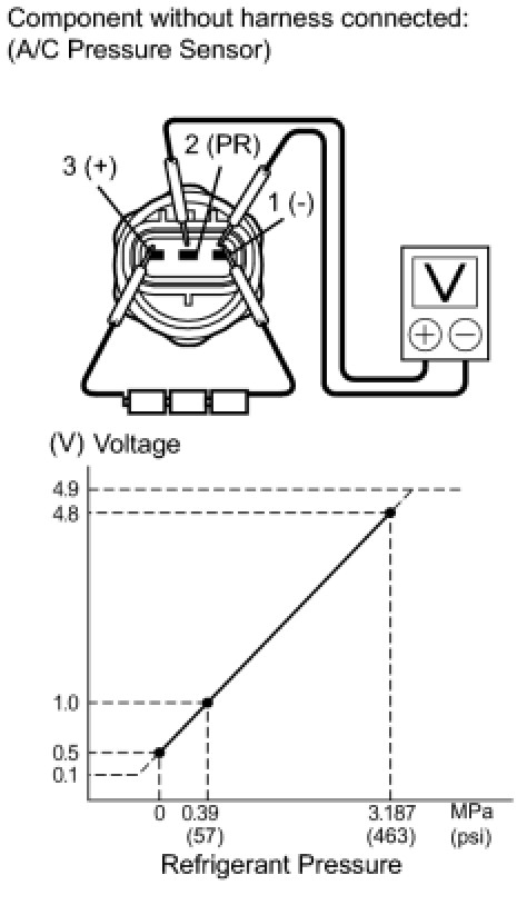 If the voltage is not as specified, replace the A/C pressure sensor.