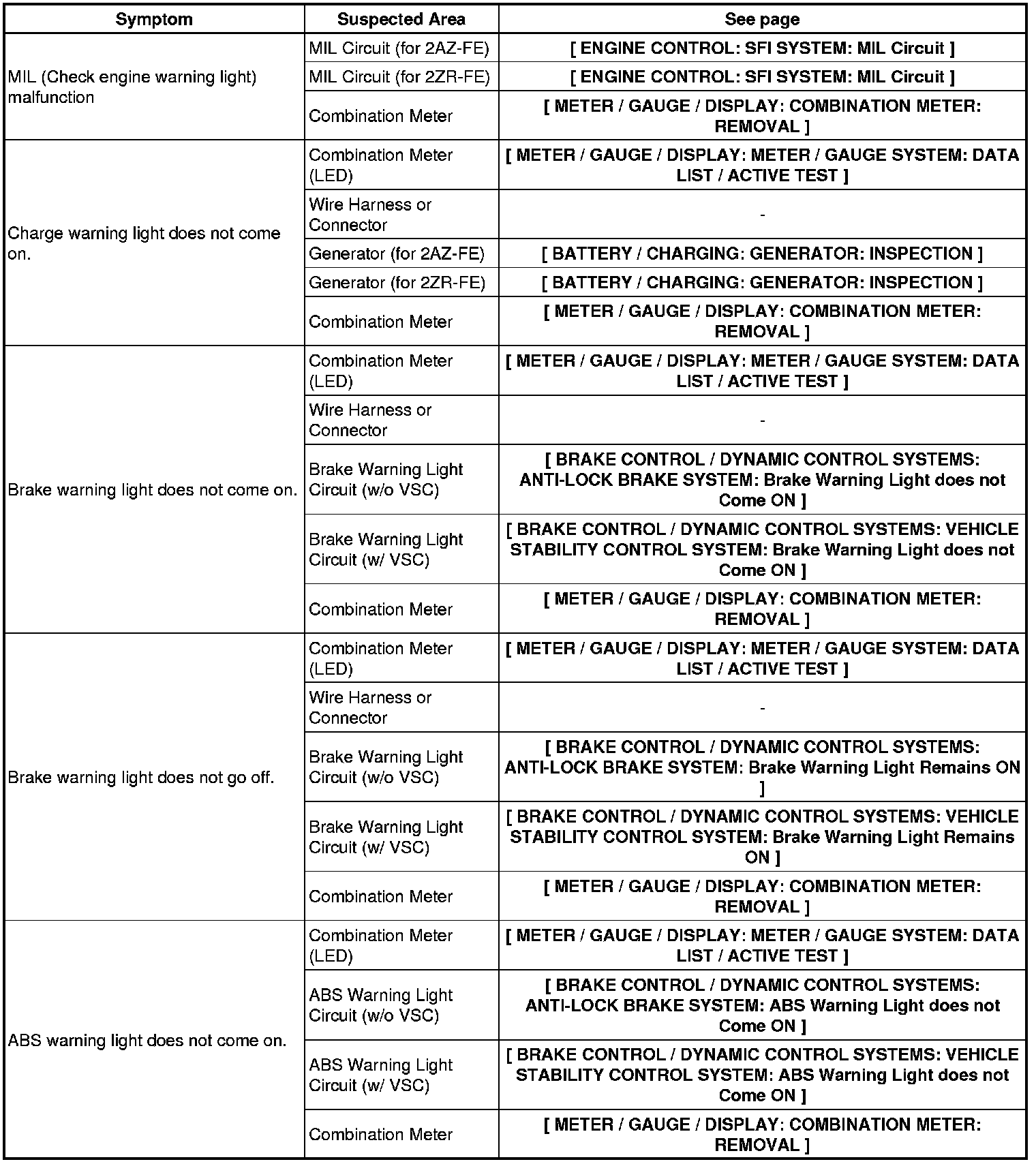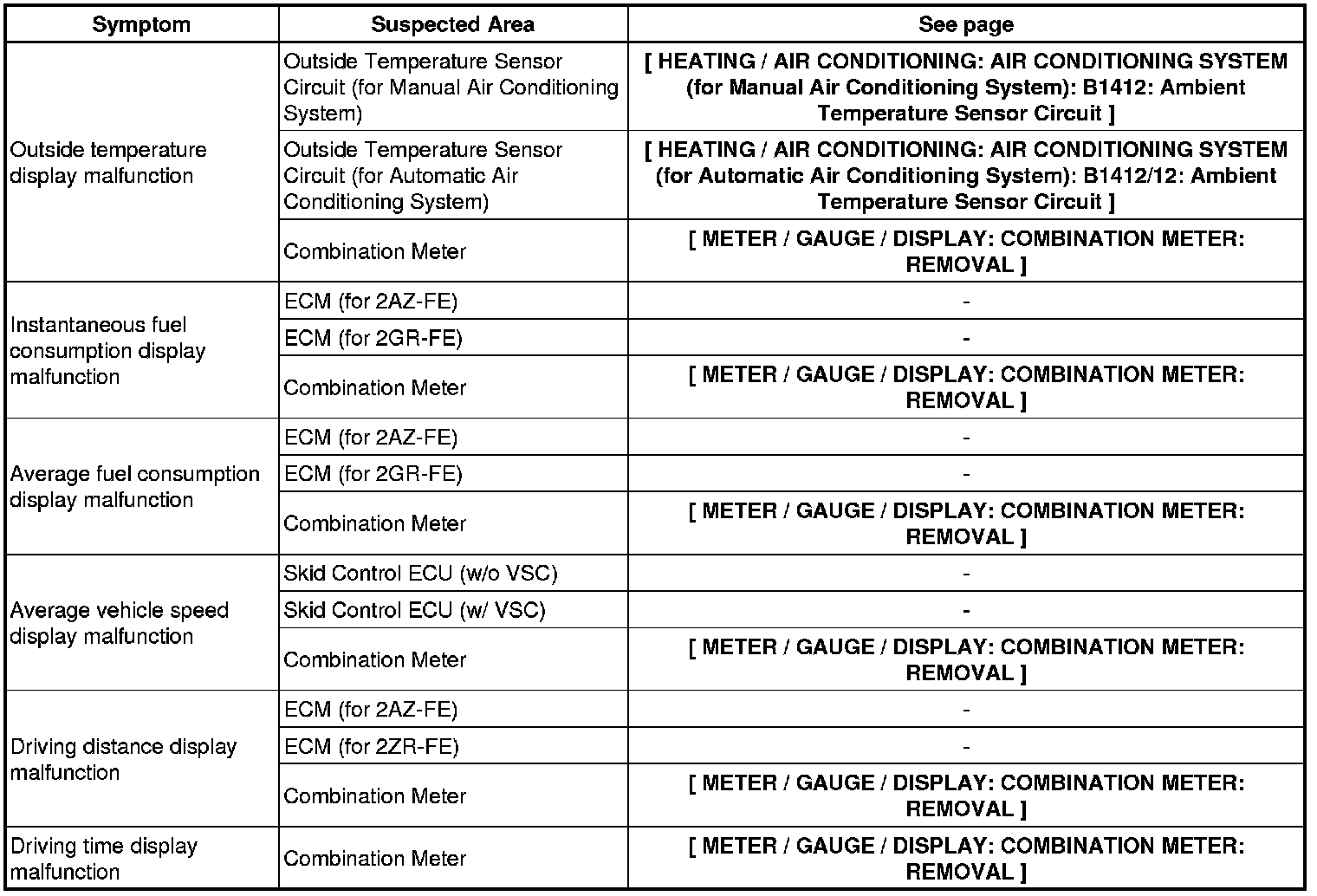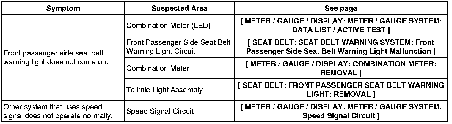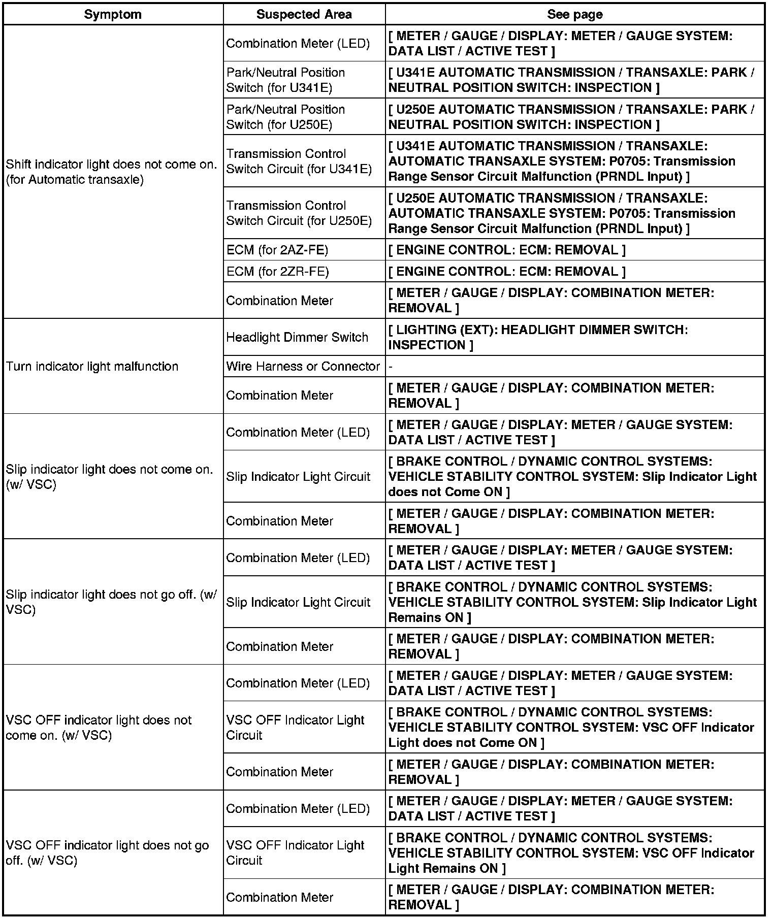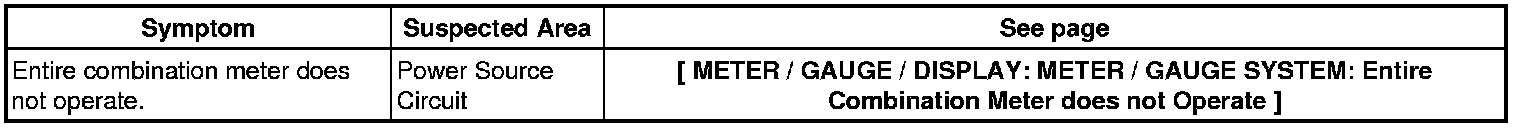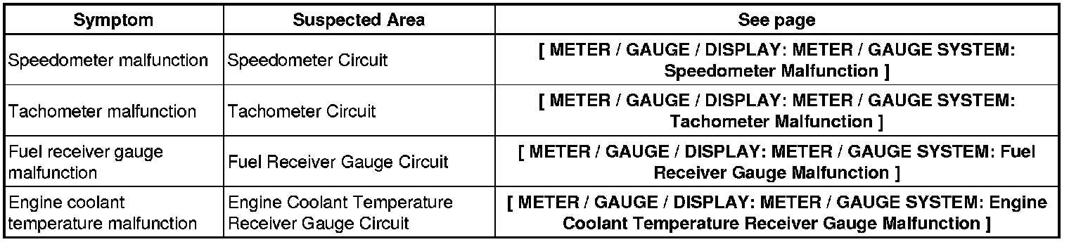 METER / GAUGE / DISPLAY: METER / GAUGE SYSTEM: PROBLEM SYMPTOMS TABLE