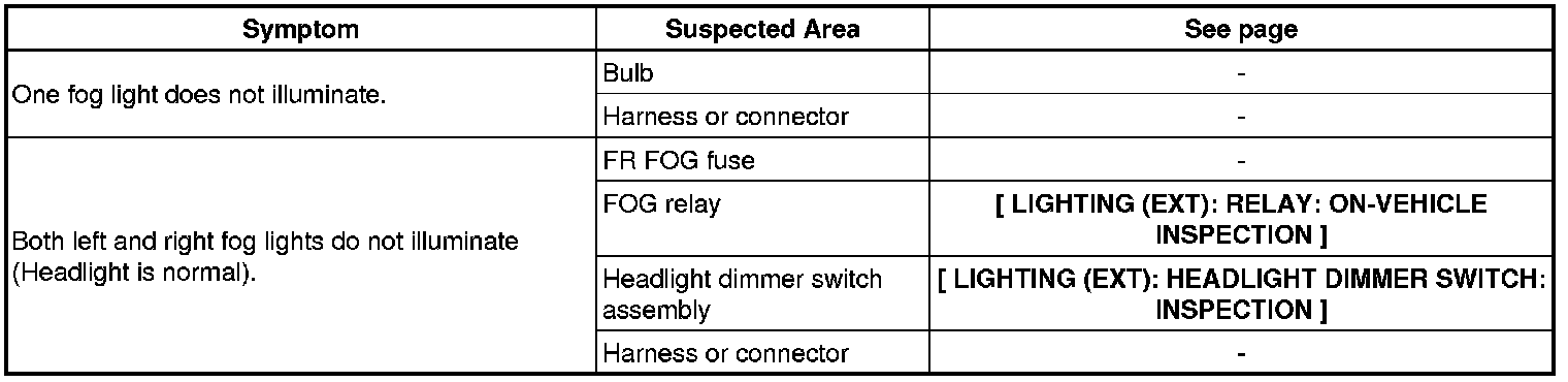 LIGHTING (EXT): LIGHTING SYSTEM: PROBLEM SYMPTOMS TABLE