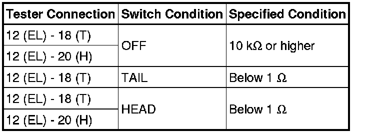 1. INSPECT HEADLIGHT DIMMER SWITCH ASSEMBLY