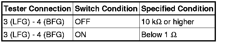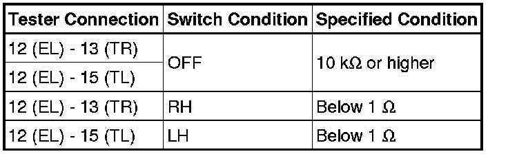 If the result is not as specified, replace the switch assembly.