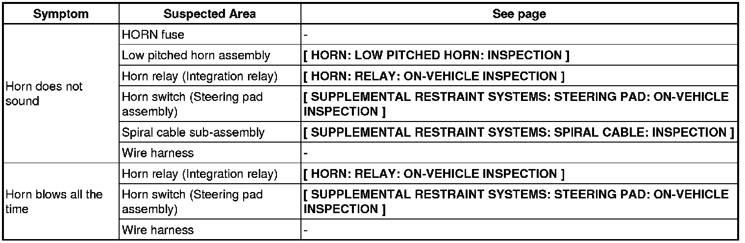 HORN: HORN SYSTEM: PROBLEM SYMPTOMS TABLE