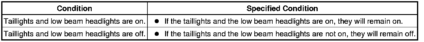 (a) If the daytime running light relay does not receive a signal due to a automatic light control sensor malfunction or open circuit, either of the following conditions will occur.