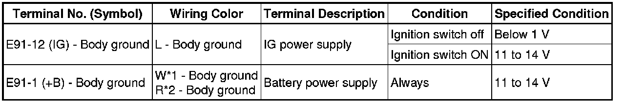 (b) Measure the voltage between the specified terminals of the wire harness side connectors and body ground.