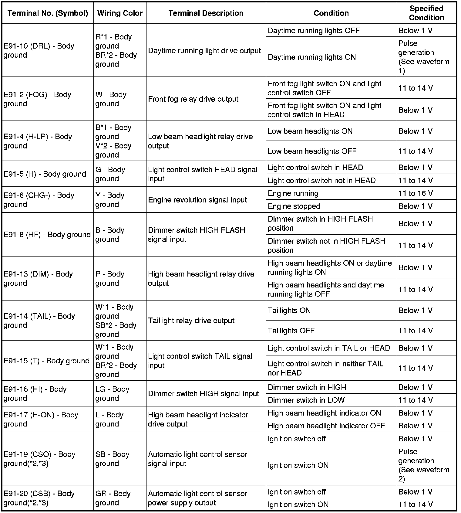 LIGHTING (EXT): LIGHTING SYSTEM: TERMINALS OF ECU