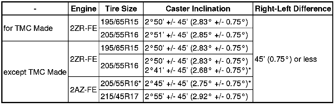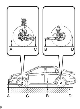 * Before inspecting the wheel alignment, adjust the vehicle height to the specified value.
