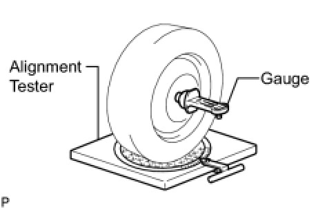 (a) Install a camber-caster-kingpin gauge or place the front wheels on the center of a wheel alignment tester.