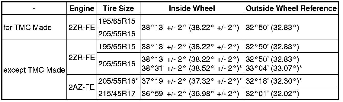 * If the angles are not as specified, check and adjust the right and left rack end lengths.