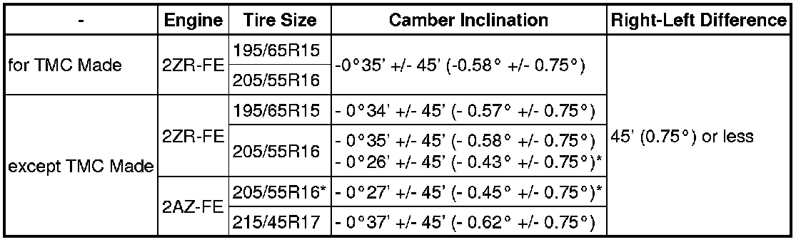 The body and suspension may be damaged if the camber is not correctly adjusted according to the table above.