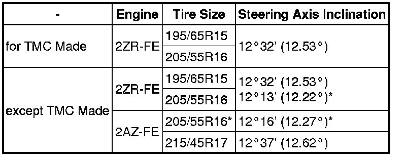 Steering Axis Inclination (Unloaded Vehicle):