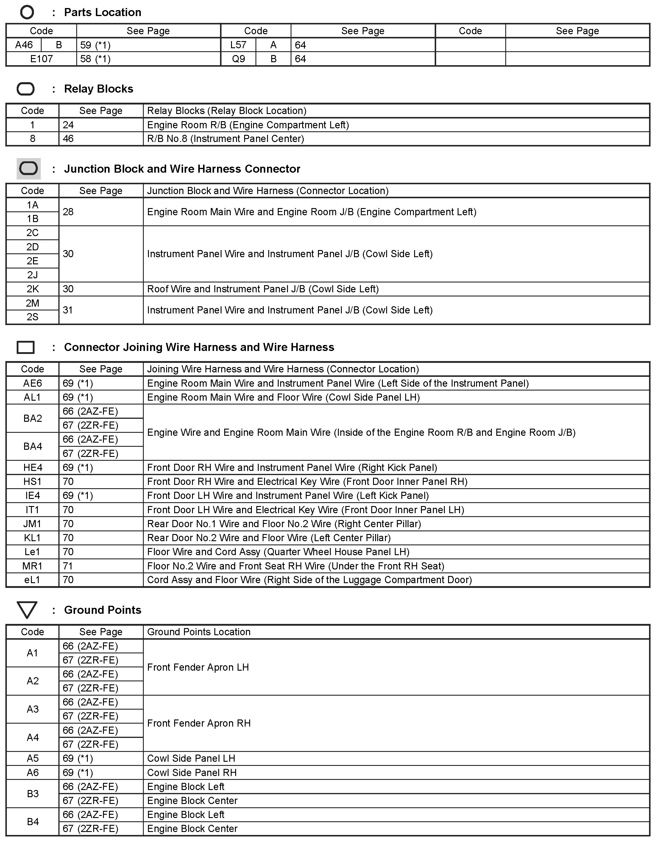 Locations: The locations of components, connectors, ground points, and splices referred to within these diagrams can be found at Vehicle Locations. Locations