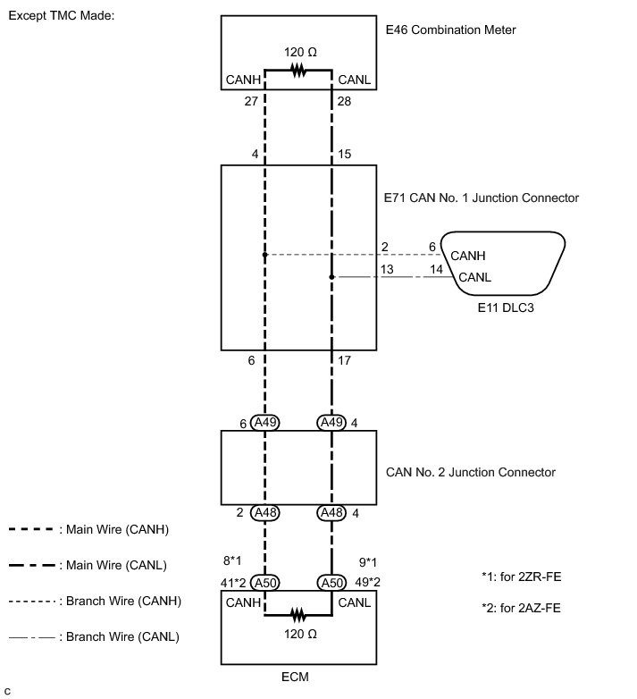 * Turn the ignition switch off before measuring the resistance between main CAN bus wires and CAN Bus branch wires.